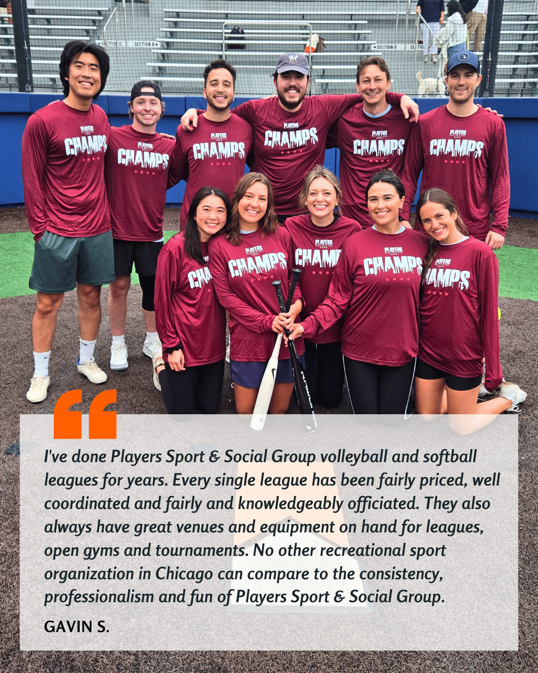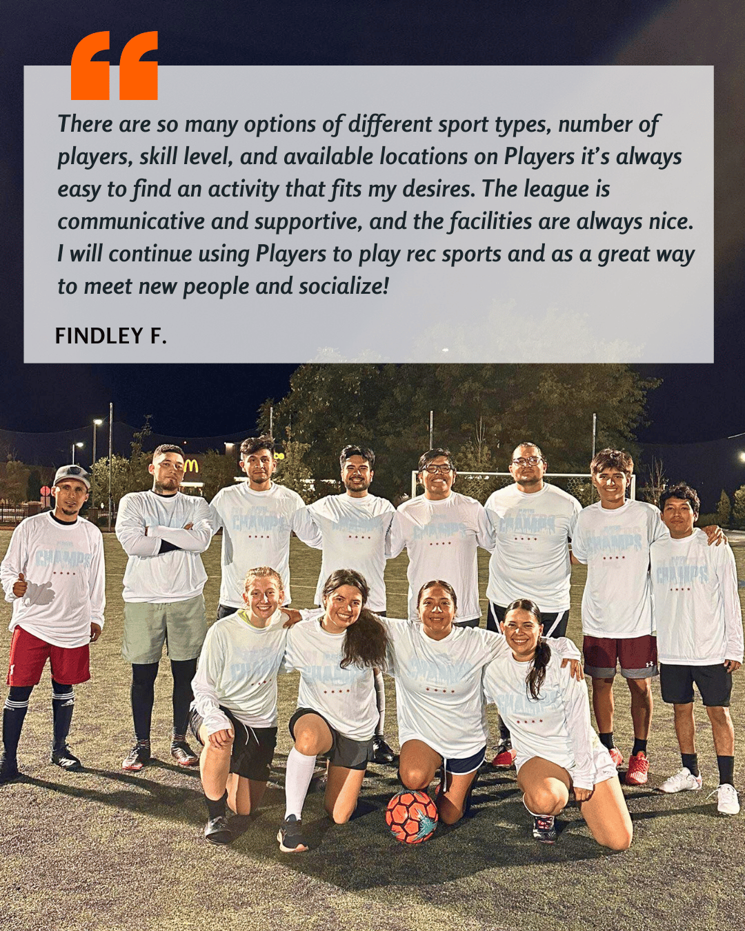 There are so many options of different sport types, number of players, skill level, and available locations on Players itβs always easy to find an activity that fits my desires. The league is communicative and supportive, and the facilities are always nice. I will continue using Players to play rec sports and as a great way to meet new people and socialize!